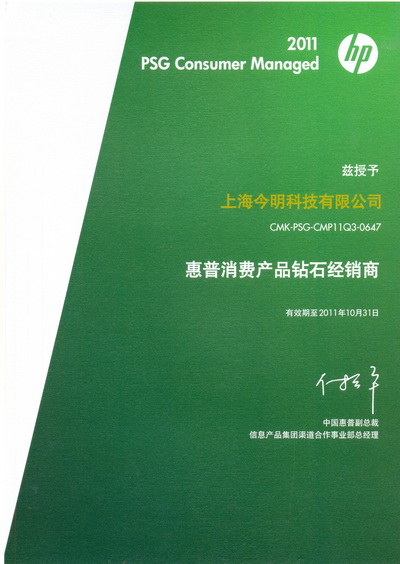 2011年惠普授權資質